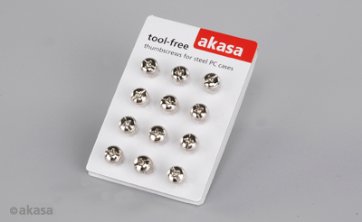Akasa 指旋螺丝为了实现轻松,无工具的拆装机壳及内部零件而设计。适用于机箱侧板,PCI背板及硬盘无工具及轻松快速地拆装。指旋螺丝不只实用,同时也增加机箱系统的美观。• 适用于机箱侧板,PCI背板及硬盘• 12颗不锈钢螺丝• 轻松指旋设计